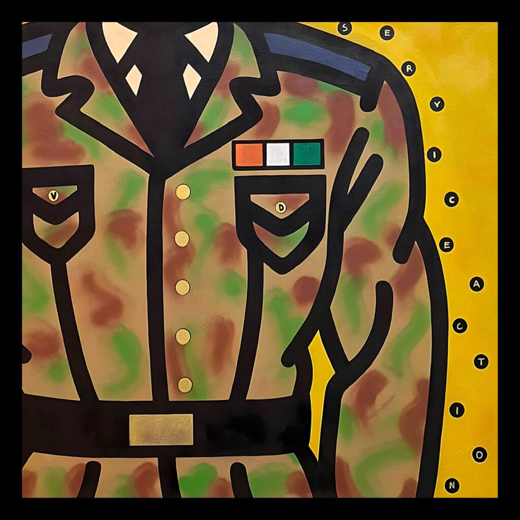 Security Medium: Mixed media on canvas Dimensions: 130 x 130 cm Location: Abidjan, Ivory Coast Year: 2026 Artist: Ced